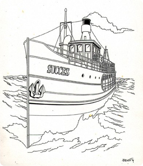 Handgetekende illustratie voor omslag informatiemap -Fa. Joop Mos Enkhuizen 1989.